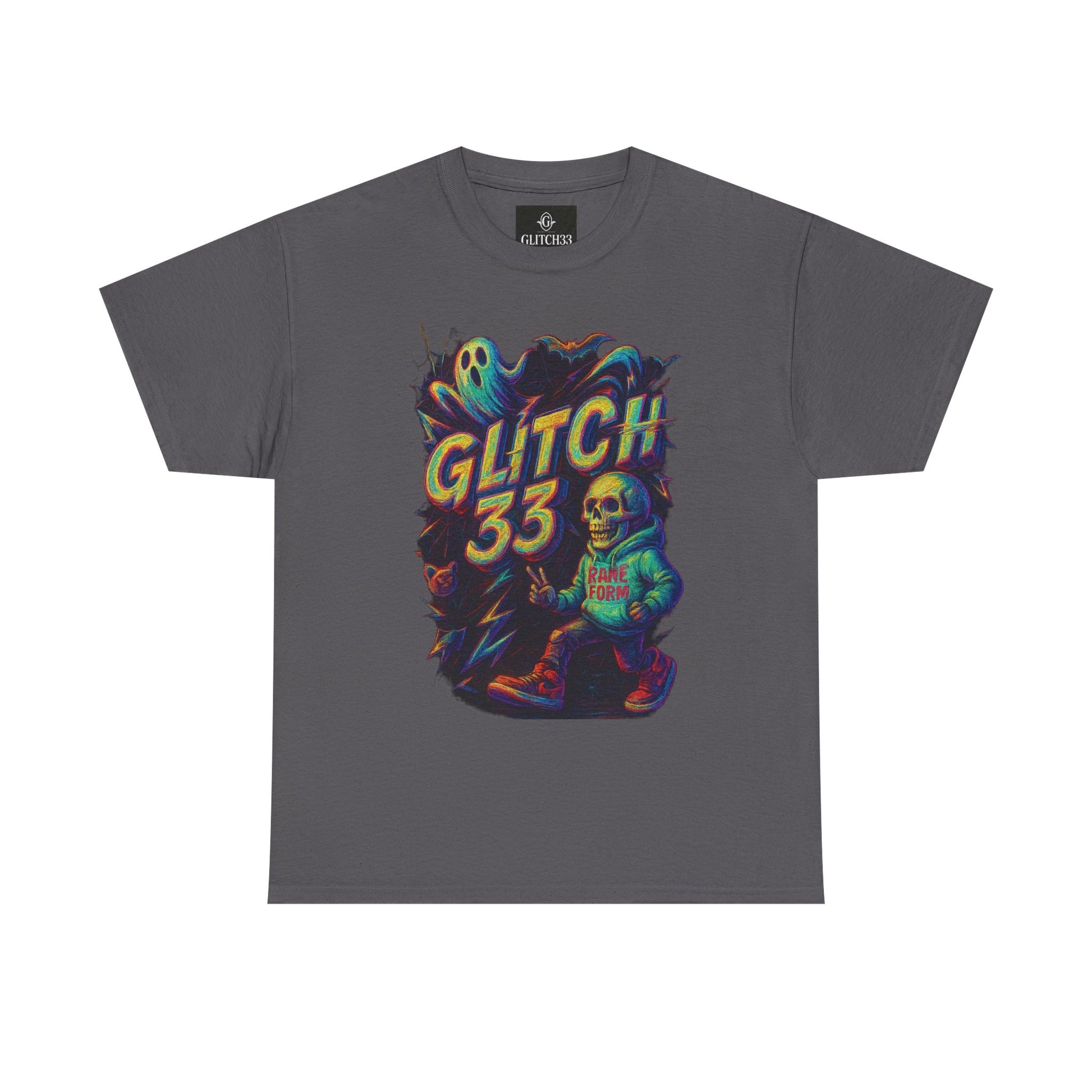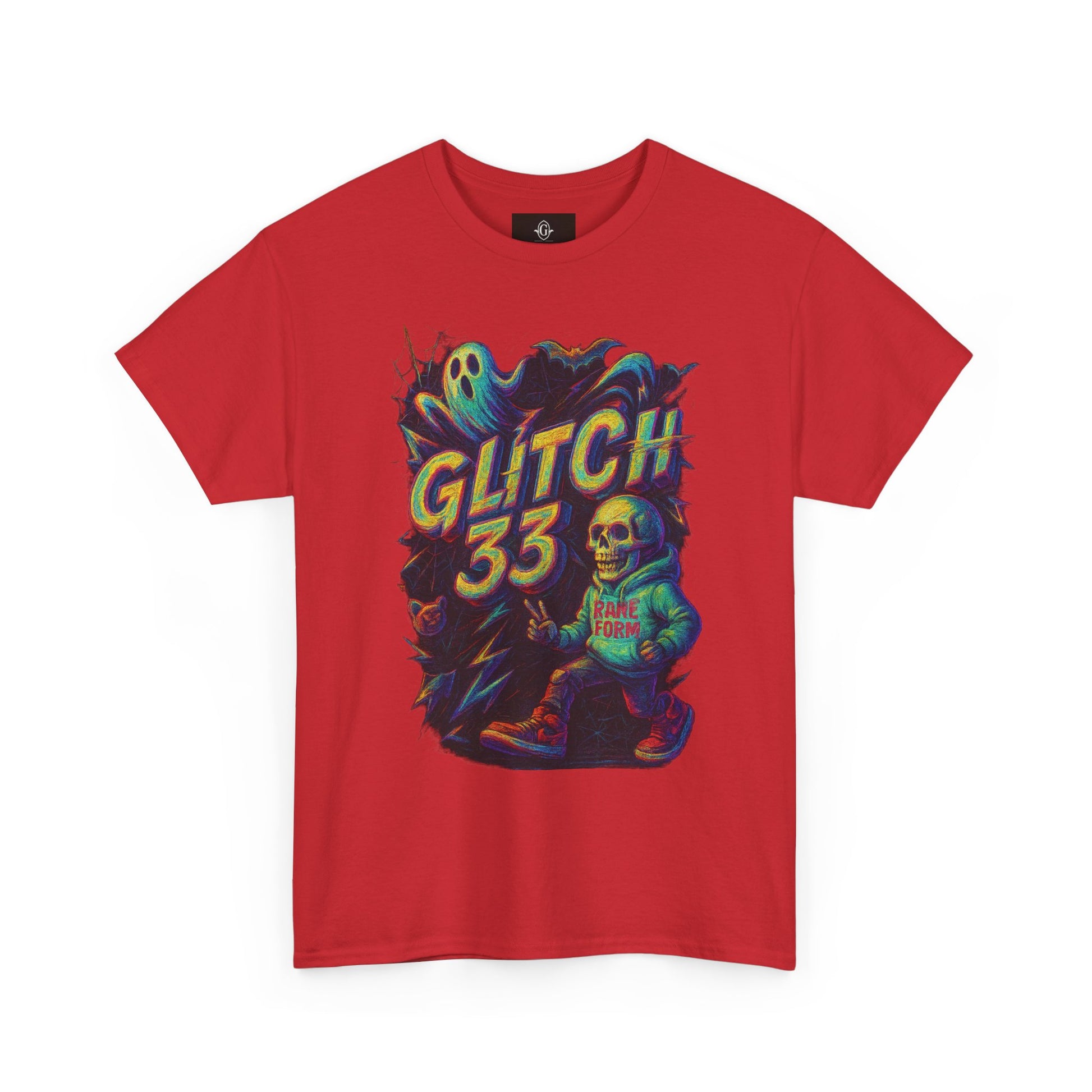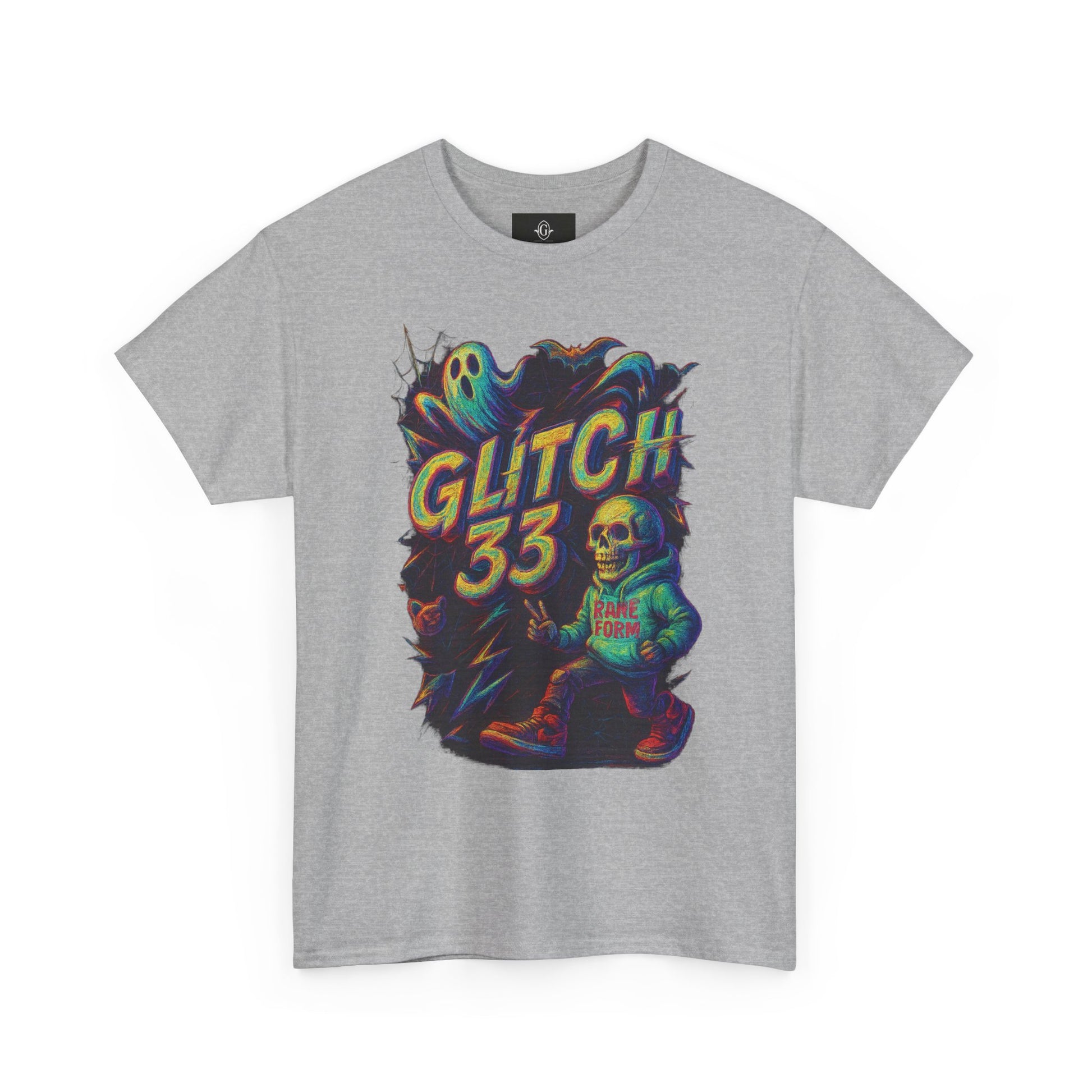 Glitch 33 Unisex Heavy Cotton Tee, Spooky Halloween Shirt, Gamer Gift, Streetwear Style, Casual Wear, Graphic Tee